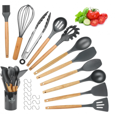 Set de herramientas de cocina, hicoosee 22 piezas sin cucharones de silicona de bpa con mango de mad