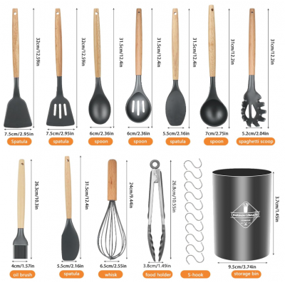 • [El paquete incluye]: espátula, filtro, cuchara, filtro, espátula, cuchara de sopa, espátula, cuchara de pasta, cepillo de dientes de aceite, batidora de huevos, carpeta de alimentos, cubo de almacenamiento y 10 ganchos