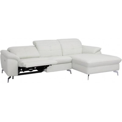 • Relajación eléctrica del sofá angular con cuero de cuero de búfalo - Económico - blanco - L250 x P170 x 82/98 cm - Estructura de abeto - Esquina a la derecha