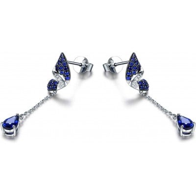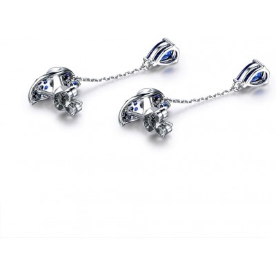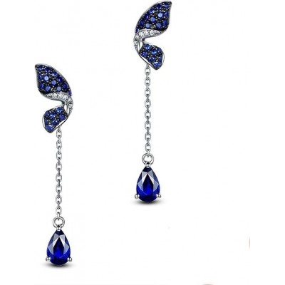 Pendientes de oro blanco Anazoz de 18K, aretes de mariposa de mujer plateada azul con zafiro de agua