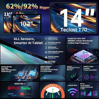 página de título > Teclast T70 tableta Tabletas de 14 pulgadas MTK G99 Octa-núcleos 2.2GHz, 20GB RAM+256GB ROM (TF 8TB)
