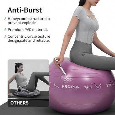 ✅ 【Anti-scoppio e antiscivolo】 PROIRON Palla da Yoga adotta una struttura unica a prova di esplosione a nido d'ape, se è forata, si sgonfia lentamente anziché esplodere.Grazie alla sua superficie leggermente ruvida, la palla da palestra è particolarmente resistente allo scivolamento e all'abrasione . Puoi usare la palla ogni giorno come sedia da ballo.