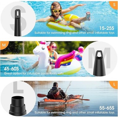 • 【3 diverse bocchette】- La pompa dell'aria elettrica è dotata di tre diverse tipologie di bocchette per soddisfare le tue varie esigenze di gonfiaggio. È perfetta per materassi ad aria, piscine gonfiabili, anelli da nuoto, piscine gonfiabili per bambini, palle da yoga e altri oggetti gonfiabili. Può anche essere utilizzata per rimuovere l'aria in eccesso dai sacchi per la conservazione sottovuoto.