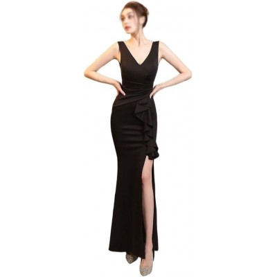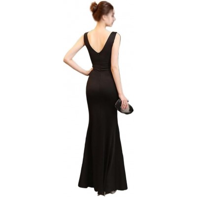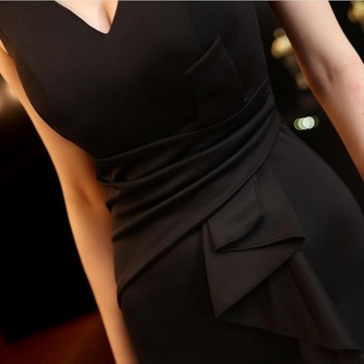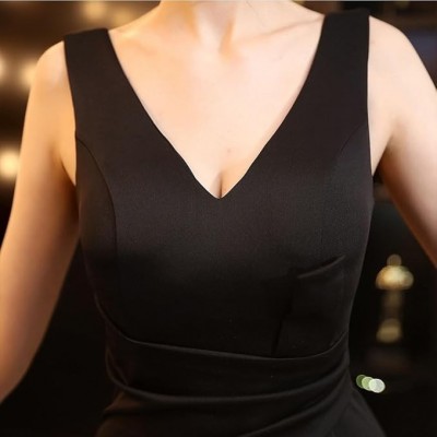página de título > Ropa > Ropa de plisetate de hterwqa ropa plissettate en satén negro V -neck alto cóctel