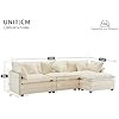 Kecduey Sofá de 3 altas, 283 x 147 x 84 cm, diseño moderno, tela de cineta, sofá acolchado en TR