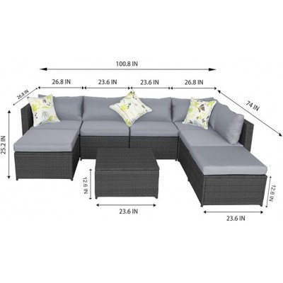 página de título > Kccuzo El conjunto de muebles de exterior con sofá de ratán acolchado en mimbre se usa para b